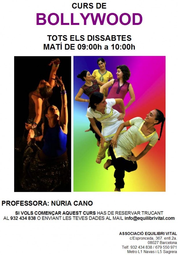 HORARIO ACTIVO: SÁBADOS DE 09:00h. a 10:000h. Prof. Núria Cano (de Bollywood Sitare)