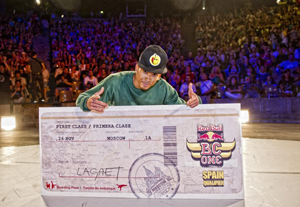 Después de unos segundos, el speaker proclamó a Lagaet ganador, sin sorpresa para el público. El bailarín recibió una tarjeta de embarque que le permitirá ir a Moscú en noviembre para disputar el campeonato REDBULL BC ONE 2011. |